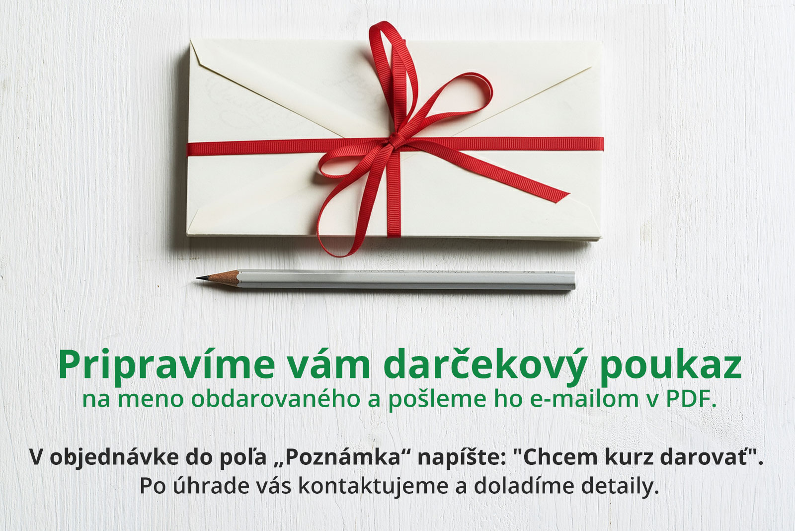 Študijné tempo si volíte sami. Kurz je navrhnutý tak, aby vás nikam netlačil, študujete podľa svojich možností a nálady. Pokiaľ sa k učeniu vrátite po dlhšej dobe, všetky materiály zostávajú prístupné a môžete plynule pokračovať tam, kde ste skončili.