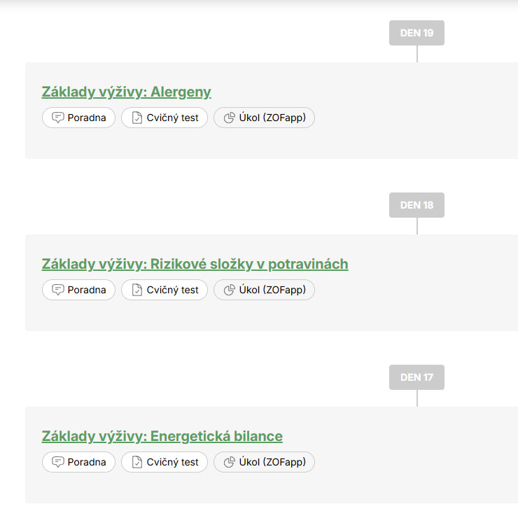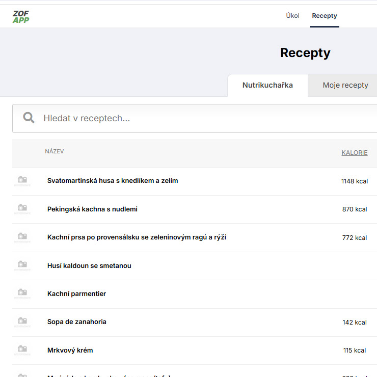 1. Súčasťou štúdia je aj práca s výučbovou aplikáciou ZOF, na ktorej vytvárate jednotlivé recepty, vo finálnej fáze kurzu aj celodenné menu/výživové plány.